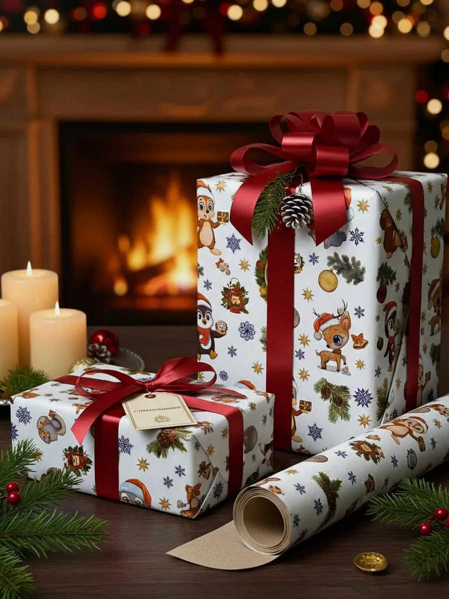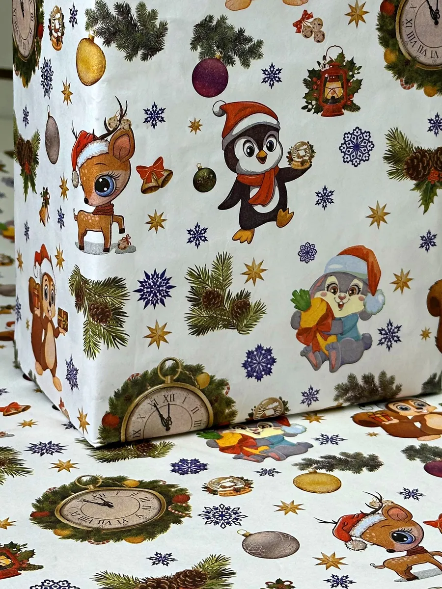Крафт-бумага вержированная 40г дизайн "Новый год ретро"