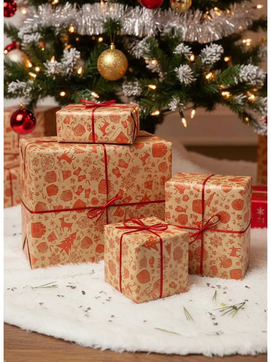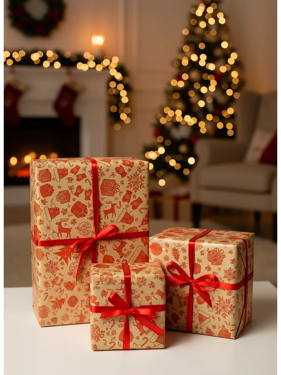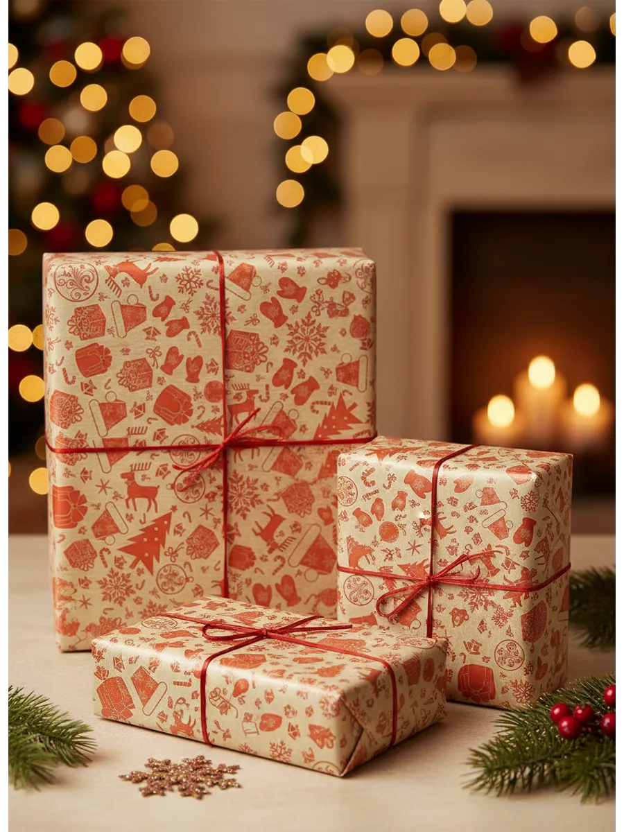 Крафт-бумага вержированная 40г дизайн "Новый Год в красном"